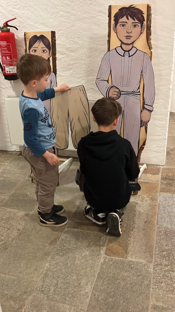 Музей находится в историческом здании (в своем время здесь располагались лазарет для солдат Наполеоновской армии, Военное министерство, руководство танкового дивизиона армии ГДР…), но выставки, да и сам музей современные, много мультимедийных и интерактивных экспонатов. А самое главное, что меня удивило и что понравилось — было много игровых уголков для детей. В одном месте можно было сыграть в Memory (немецкий язык / диалект Рудных гор), в другом — в игру Монополию, рядом стоял ящик с деревянными игрушками, а в другом зале — корзина с самыми настоящими нитками и иголками (задача — пришить на кусочек ткани пуговицу)… Надо ли говорить, что мы с детьми зависли там на несколько часов.