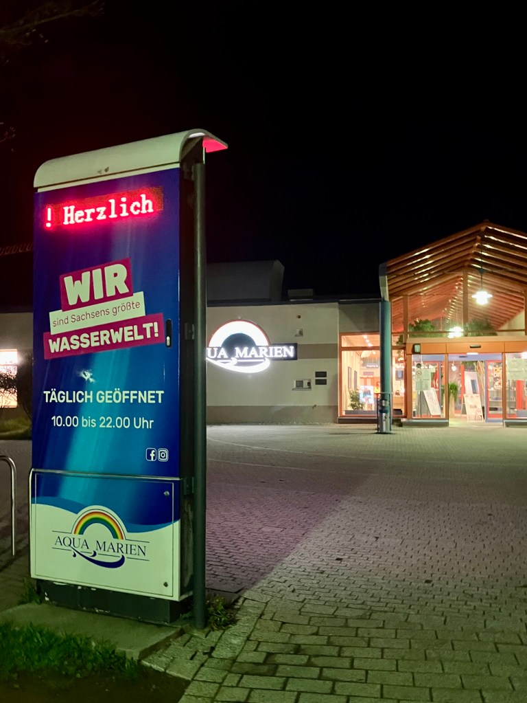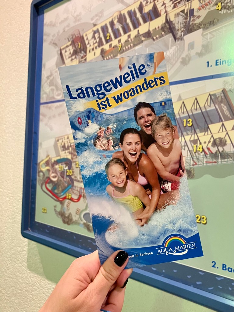 Ну и ярким завершением нашего мини-отпуска стало посещение аквапарка Erlebnisbad AQUA MARIEN — крупнейшего в Саксонии. Он сейчас частично на ремонте, но даже это не помешало нам провести там пол-дня (детям понравились пусть искусственные, но волны; а взрослым — купание в термах с соленой водой).