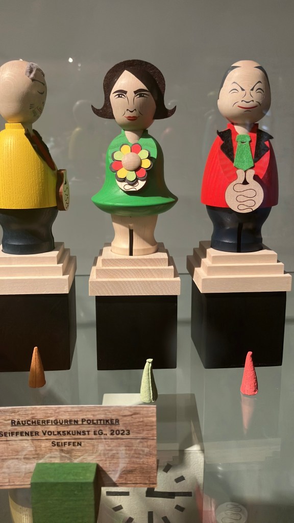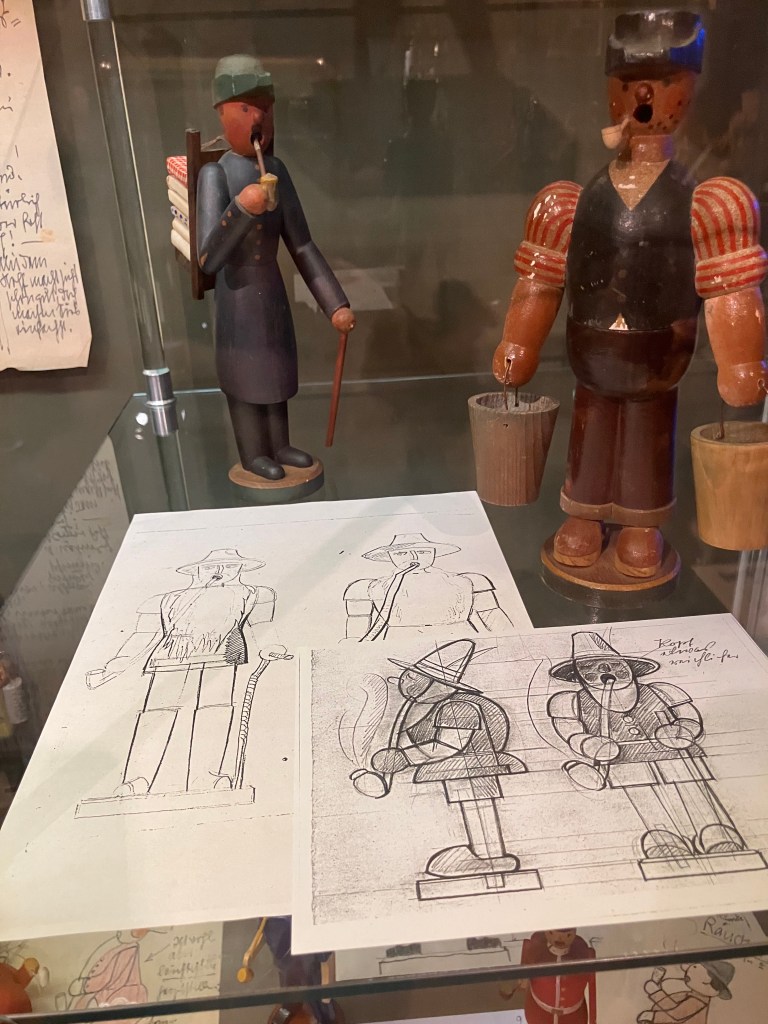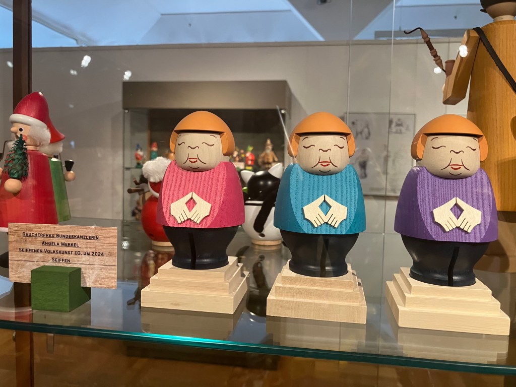 Кроме того, сейчас там проходит и несколько специальных выставок. Одна посвящена миру сказок, другая — пожарной службе Зайффена. Мне лично понравилась специальная выставка, посвященная „курительным человечкам“ — „WENN’S RAACHT UN NAABELT…“, на которой были представлены фигурки разных годов, в том числе и современные (например, фигурка Ангелы Меркель, фигурки представителей разных профессий и так далее).