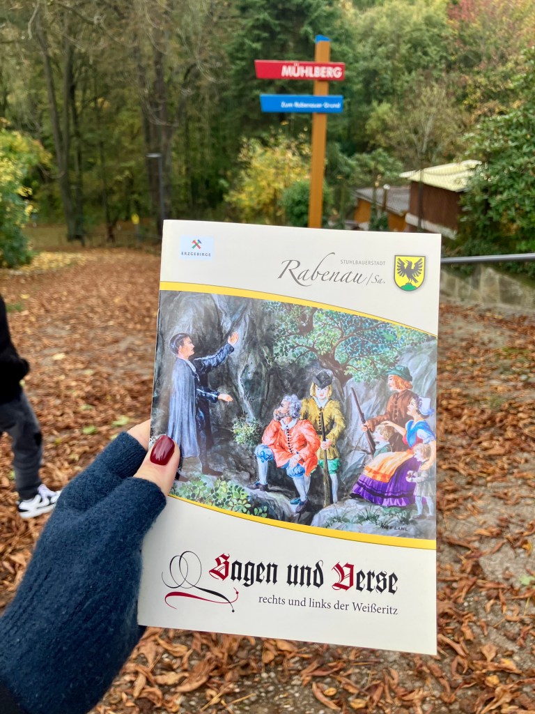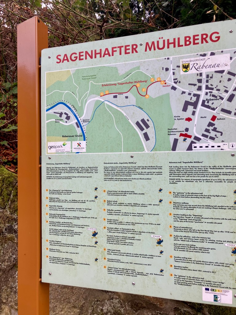 Но и это еще не всё! Советую совместить посещение музея с прогулкой по Rabenauer Grund — Erlebnisweg «Sagenhafter Mühlberg». На протяжении всего маршрута вас будут ждать специальные стенды с местными легендами. А для детей — игры с викторинами. Самое интересное- если правильно ответить на все вопросы и отгадать шифр, то вас ждет маленький сюрприз. Сейф с «сокровищами» находится как раз-таки во дворе Музея 😉